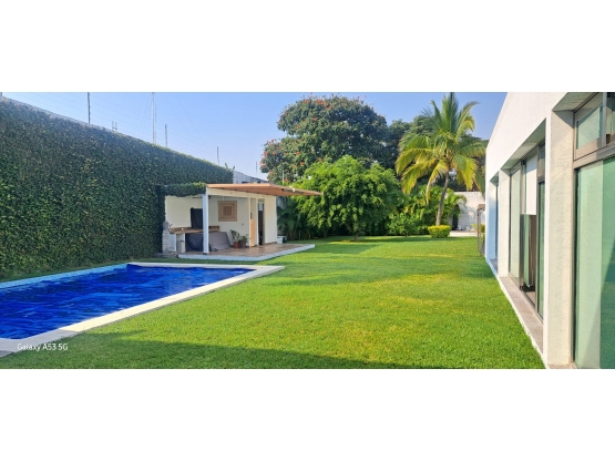 SALA, COMEDOR Y COCINA TIENEN VISTA A LA TERRAZA, PALAPA CON BAÑO, JARDIN Y ALBERCA.